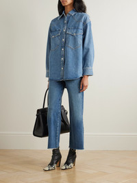 AGOLDE's cropped 'Harper' jeans are made from gently faded blue denim that's endlessly versatile. This mid-rise pair is designed with slightly cropped, frayed legs and has a classic five-pocket construction. Size & Fit - Fits true to size, take your normal size - Mid-rise, cut for a straight-leg fit - Mid-weight, non-stretchy denim - Size 26 jeans have an inside leg of 27"/ 68cm - Model is 175cm/ 5'9" and is wearing a size 26 Model measurements: - Bust: 81cm/ 32" - Waist: 64cm/ 25" - Hip: 89cm/ 35" Details & Care - Dark-blue denim - Partially concealed button fastenings at front - 90% cotton, 6% recycled cotton, 3% polyester, 1% elastane - Machine wash or dry clean - Designer color: Motion