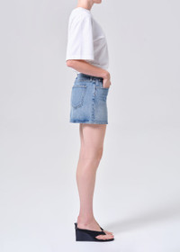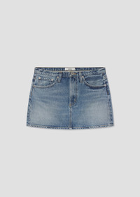 The Keira Mini Skirt redefines a denim classic with a sleek, modern fit. Designed in a medium vintage indigo wash, it features a skinny waistband, classic five-pocket styling, and a mini length that feels effortless and contemporary. Crafted from non-stretch regenerative cotton denim with a soft hand feel, it offers all day comfort while maintaining its clean, structured shape. This fit is true to size. Looks Like: Medium vintage indigo mini skirt with skinny waistband Feels Like: Rigid, non stretch cotton denim with a soft hand for all day wearability MORE DETAILS Closure: Zipper Fly Waist: 32 1/2" Length: 12 1/2" Model is 5'10" and is wearing a Size 27 Fabric: 100% Regenerative Cotton Care Instructions: Machine wash cold inside out with like colors. Do not bleach. Tumble dry low. Made in Turkey with imported materials A3071-1206-BOST