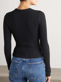 EDITORS'NOTES AGOLDE has perfected both the art of jeans and the staples to wear them with. This 'Alma' top has a 'Shrunken' fit that hits nicely above a high-rise waist. It's made from certified organic cotton blended with a touch of stretch and has a ribbed finish. Lower-Impact Materials. This product is made using at least 50% lower-impact materials or ingredients. Find out more about our NET SUSTAIN criteria here. SIZE & FIT Model measurements: - Fits true to size, take your normal size - Designed for a close fit - Mid-weight, stretchy fabric - Model is 177cm/ 5'10" and is wearing a size Small - Bust: 85cm/ 33.5” - Waist: 62cm/ 24.5” - Hip: 91cm/ 36” DETAILS & CARE - Black stretch organic cotton - Slips on - 95% organic cotton, 5% elastane