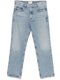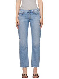 Straight-leg non-stretch regenerative cotton- and recycled lyocell-blend denim jeans. Fading, whiskering, and subtle distressing throughout. · Low-rise · Belt loops · Five-pocket styling · Zip-fly · Logo-engraved silver-tone hardware · Contrast stitching in tan Supplier color: Libertine 67% regenerative cotton, 22% recycled lyocell, 11% recycled cotton. Made in Turkey 241214F069056