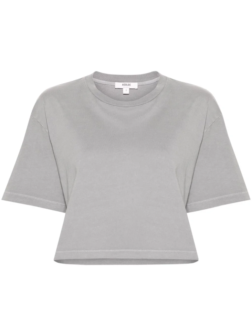 Anya cropped T-shirt Highlights - Shark grey - Organic cotton - Lightweight jersey - Crew neck - Short sleeves - Straight hem - Cropped Made in United States Composition Organic Cotton 100% SIZE & FIT Model measurements Height 5 ft 11 in(1.8 m) Bust/Chest 34.25 in(87 cm) Hips 35.82 in(91 cm) Waist 24.8 in(63 cm) FittingInformation Designed for a boxy fit, intended for a loose fit throughout Cropped in length Made from a midweight non-stretch fabric, this piece offers minimal elasticity when worn