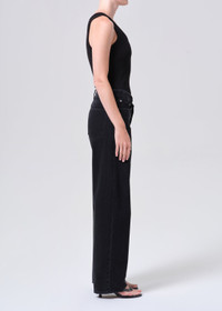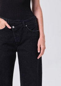 The Arc Criss Cross Jean in Phase updates a signature silhouette in washed black weightless denim. Crafted from regenerative cotton, this non-stretch, soft-to-the-touch fabric offers a worn-in feel with lasting structure. A criss cross waistband and curved leg define its directional shape, creating an elongated, effortlessly modern fit. This fit is true to size. Looks Like: Dark lightly worn in black denim pant with criss cross closure Feels Like: Non stretch, weightless denim washed down for a super soft feel MORE DETAILS Closure: Button Fly Rise: 9 1/2" Inseam: 32" Leg Opening: 19 1/2" Model is 5'10" and is wearing a Size 27 Fabric: 100% Regenerative Cotton Care Instructions: Machine wash cold inside out with like colors. Do not bleach. Tumble dry low. Made in Turkey with imported materials A317-1817-PHA