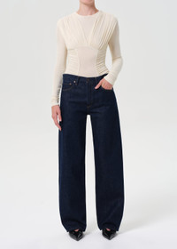 The Arc Jean 32" offers a relaxed wide-leg silhouette with a mid-rise waist. Cut from rigid regenerative cotton denim, it softens with wear while maintaining structure. Subtle fading, marbling, and whiskering add lived-in character, making it ideal with fitted tops or cozy knits. For a shorter inseam, shop the Arc Jean. This fit is true to size. Looks Like: Dark deep rinsed indigo denim pant Feels Like: Rigid, non stretch cotton denim with a soft hand for all day wearability MORE DETAILS Closure: Button Fly Rise: 11" Inseam: 32" Leg Opening: 19 1/2" Model is 5'10" and is wearing a Size 27 Fabric: 100% Regenerative Cotton Care Instructions: Machine wash cold inside out with like colors. Do not bleach. Tumble dry low. Made in Turkey with imported materials A290-1810-NSE