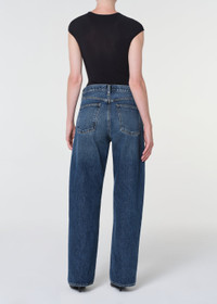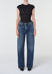 The Arc Jean 32" offers a relaxed wide-leg silhouette with a mid-rise waist. Cut from rigid regenerative cotton denim, it softens with wear while maintaining structure. Subtle fading, marbling, and whiskering add lived-in character, making it ideal with fitted tops or cozy knits. For a shorter inseam, shop the Arc Jean. This fit is true to size. Looks Like: Bright dark indigo denim pant Feels Like: Rigid, non stretch cotton denim with a soft hand for all day wearability MORE DETAILS Closure: Button Fly Rise: 11" Inseam: 32" Leg Opening: 19 1/2" Model is 5'10" and is wearing a Size 27 Fabric: 100% Regenerative Cotton Care Instructions: Machine wash cold inside out with like colors. Do not bleach. Tumble dry low. Made in Turkey with imported materials A290-1206-SHWV