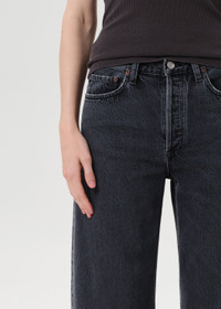 The Arc Jean features a subtle bow-leg silhouette with an easy, relaxed top block—offering a directional shape that feels effortlessly cool. Crafted from non-stretch cotton denim in a medium washed out black, this fit is designed for all-day wearability with a soft hand feel. Perfectly paired with boots, the Arc is a go-to for any day and elevated layering. This fit is true to size. Looks Like: Medium washed out black denim pant Feels Like: Non stretch, weightless denim washed down for a super soft feel MORE DETAILS Closure: Button Fly Rise: 11" Inseam: 26" Leg Opening: 19 3/4" Model is 5'10" and is wearing a Size 27 Fabric: 100% Regenerative Cotton Care Instructions: Machine wash cold inside out with like colors. Do not bleach. Tumble dry low. Made in Turkey with imported materials A257-1818-SYBL