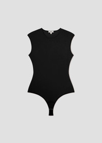 An essential when you can't deal with tucking in your top. The Aura bodysuit is that cool girl, body skimming, need-now piece. Cut from stretch-jersey, pair back to easy denim on the weekends or style under a blazer for work. This fit is true to size. Looks Like: Dark black sleeveless bodysuit with subtle sheen Feels Like: Lightweight second skin ultra-smooth elastane blend MORE DETAILS Body Length: 26 1/2" Chest: 30" Sweep: 28" Waist: 24" Model is 5'10" and wearing a size Small Fabric: 73% Polyamide 27% Elastane Care Instructions: Machine wash cold inside out with like colors. Do not bleach. Tumble dry low. Made in USA with imported materials A7295-1145_BLK