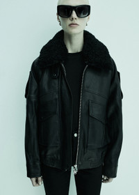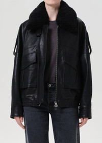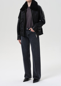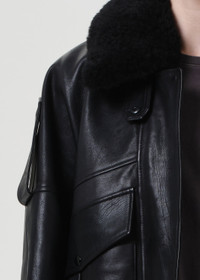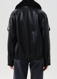 The Avril Jacket makes a bold statement with its oversized silhouette, exaggerated faux fur collar, and clean utilitarian lines. Crafted from ultra-soft, luxe leather in true black, it strikes the perfect balance of structure and ease. Layer over minimal staples for an instantly elevated look. This fit is true to size. Looks Like: True black oversized leather jacket with faux fur collar Feels Like: Cool to the touch super soft luxe leather MORE DETAILS Model is 5'10" and wearing a size Small Care Instructions: Machine wash cold inside out with like colors. Do not bleach. Tumble dry low. Made in India with imported materials A5100-BLK
