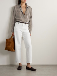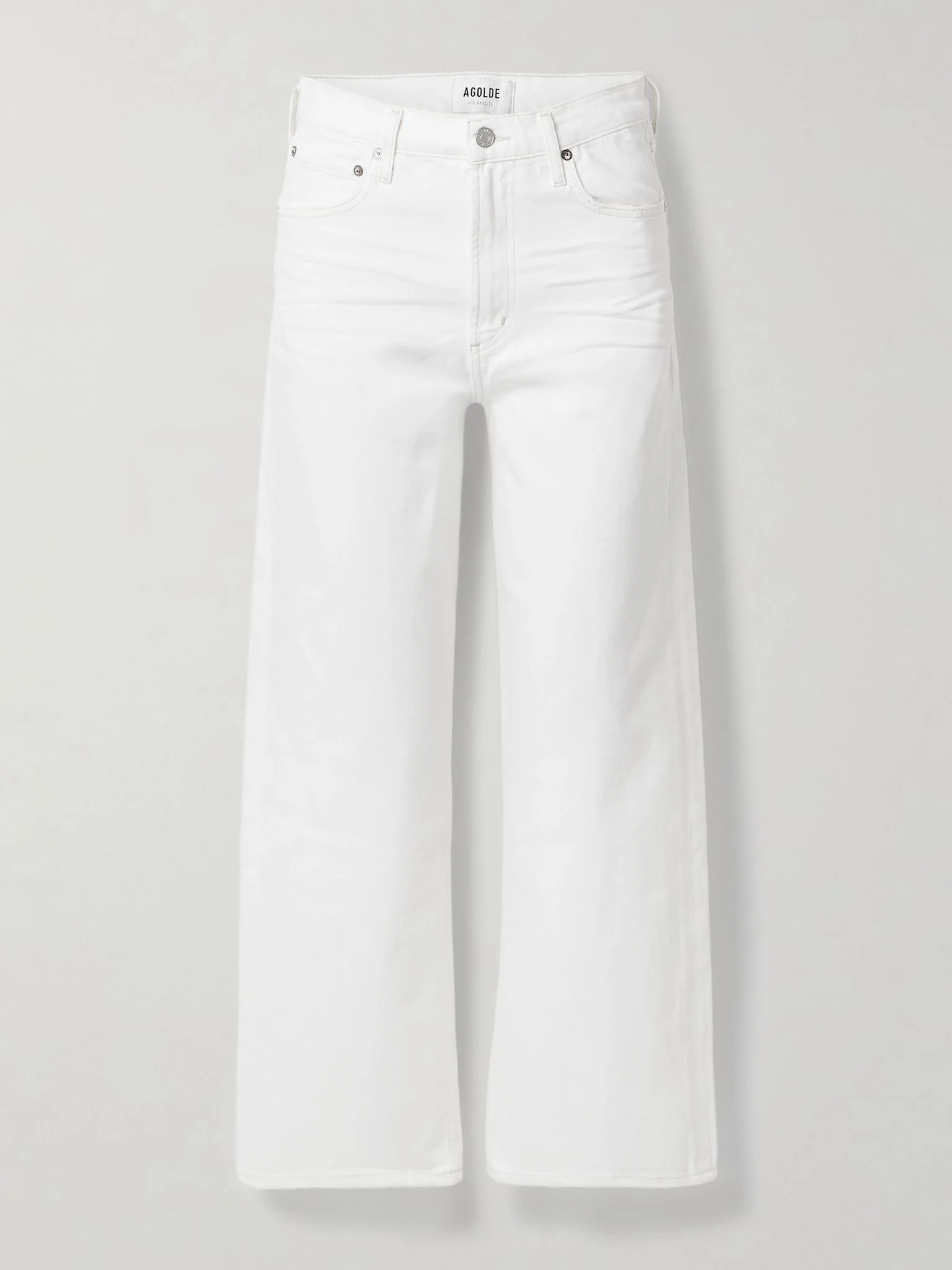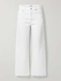 AGOLDE's 'Ren' jeans will soon become your go-to pair for casual days. Made from white denim, they have a high waist and wide legs. Half-tuck a tee into yours. Lower-Impact Materials. This product is made using at least 50% lower-impact materials or ingredients. Find out more about our NET SUSTAIN criteria here. Size & Fit - Fits true to size, take your normal size - High-rise, designed for a wide-leg fit - Mid-weight, non-stretchy fabric - Size 25 jeans have an inside leg of 27.5"/ 70cm - Model is 180cm/ 5'11" and is wearing a size 25 Model measurements: - Bust: 79cm/ 31” - Waist: 61cm/ 24” - Hip: 89cm/ 35” Details & Care - White denim - Button and concealed zip fastening at front - 98% cotton, 2% elastane - Machine wash