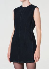 The Barton Dress is a sleeveless tank with a relaxed straight fit. Made from rigid regenerative cotton denim with subtle marbling, it pairs easily with layers or boots. This fit is true to size. Looks Like: Blackened blue indigo denim sleeveless tank dress. Feels Like: Rigid, non stretch cotton denim with a soft hand for all day wearability MORE DETAILS Body Length: 33" Chest: 34 1/2" Model is 5'10" and wearing a size Small Fabric: 100% Regenerative Cotton Care Instructions: Machine wash cold. Made in Turkey with imported materials A20006-1206-NKI