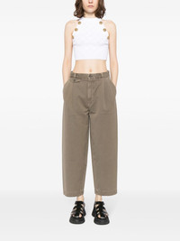 Becker baggy tapered trousers Highlights - Taupe brown - Supima cotton-cotton blend - Twill weave - High-rise - Belt loops - Pleat detailing - Wide leg - Tapered leg - Cropped leg - Front button and zip fastening - Slip pockets to the sides - Rear welt pocket Imported Composition Supima Cotton 55%, Cotton 45% SIZE & FIT Model measurements Height 5 ft 10 in(1.78 m) Bust/Chest 32.67 in(83 cm) Hips 37 in(94 cm) Waist 25.59 in(65 cm) FittingInformation Designed for a tapered fit, these trousers allow for a close fit at the waist and a loose unrestricted fit over the leg with a closer fit towards the ankle Made from a midweight non-stretch fabric This piece fits true to size – take your usual size Washing instructions Machine Wash