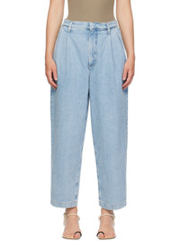Baggy-fit tapered non-stretch regenerative cotton denim jeans. Fading throughout. · Belt loops · Four-pocket styling · Zip-fly · Pleats at front · Cropped legs · Contrast stitching in tan Supplier color: Rotate 100% regenerative cotton. Made in Turkey 242214F069011