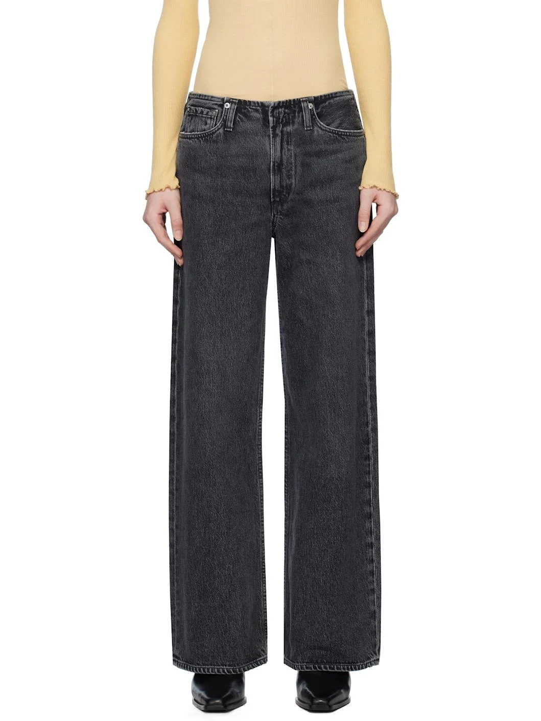 Loose-fit non-stretch regenerative cotton denim jeans. Fading, whiskering, and subtle distressing throughout. · Low-rise · Belt loops · Five-pocket styling · Zip fly · Logo-engraved gunmetal-tone hardware Supplier color: Paradox 100% regenerative cotton. Made in United States 251214F069096