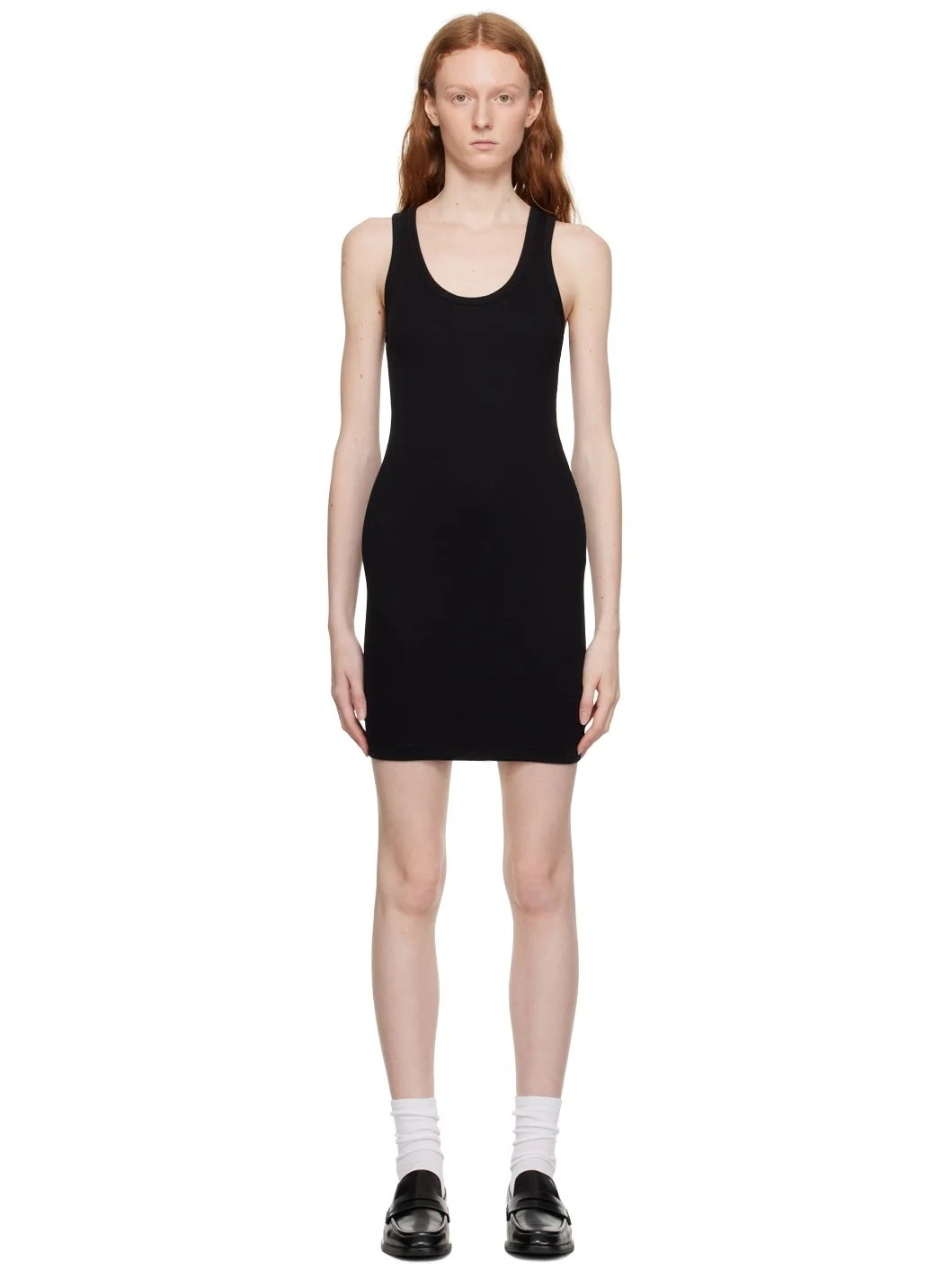 Rib knit stretch viscose- and polyester-blend dress. Scoop neck. Supplier color: Black 43% viscose, 43% polyester, 14% spandex. Made in United States 232214F052023