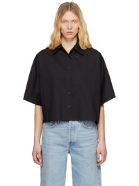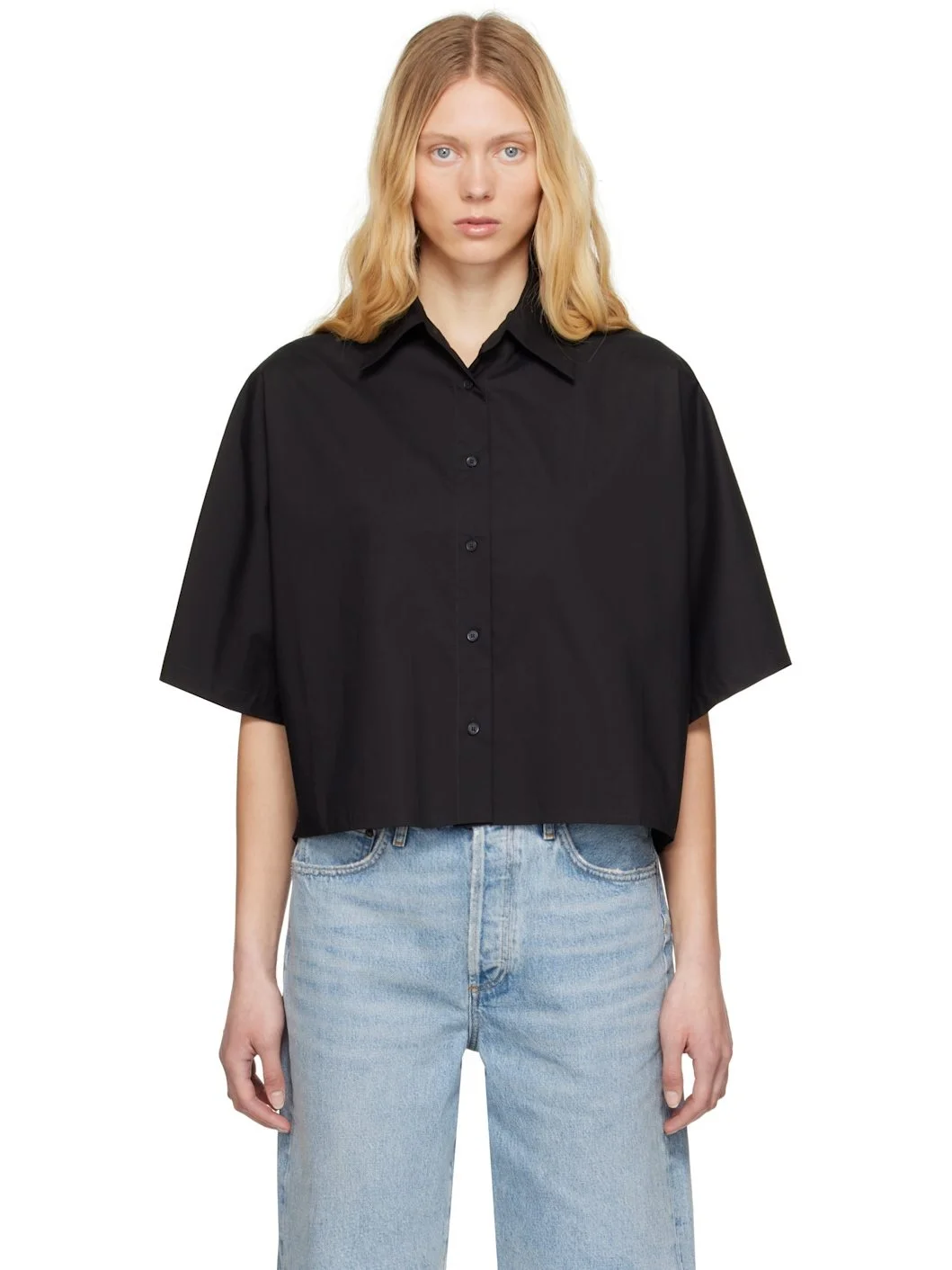 Oversized lightweight cotton poplin shirt. · Boxy-fit · Spread collar · Button closure · Cropped droptail hem · Dropped shoulders · Locker loop and box pleat at back yoke Supplier color: Black 100% cotton. Made in Turkey 251214F109002