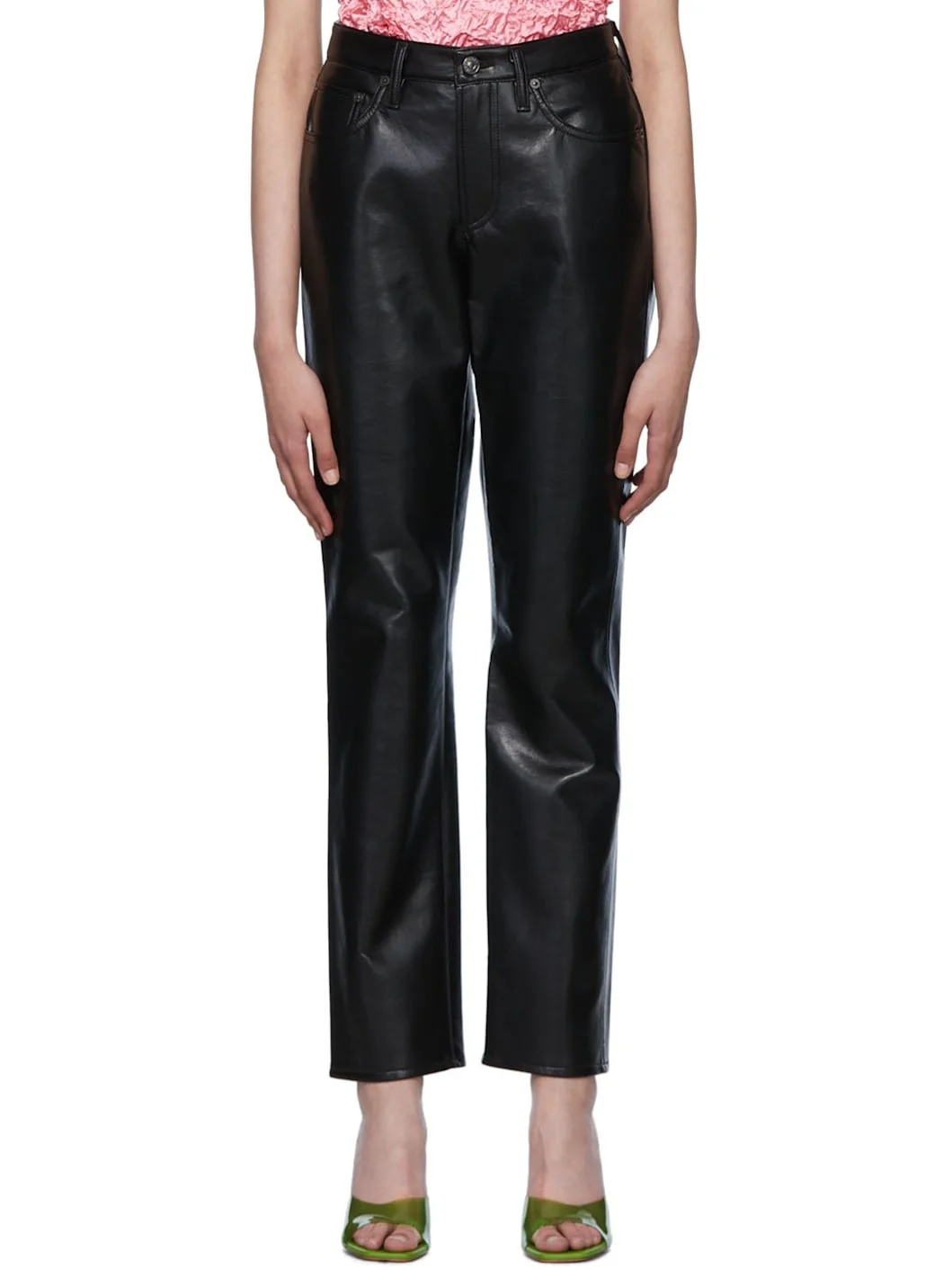 Grained recycled leather-blend trousers. · Belt loops · Zip-fly · Five-pocket styling Supplier color: Black 50% recycled leather, 30% polyurethane, 10% viscose, 10% polyester. Made in United States 222214F084000