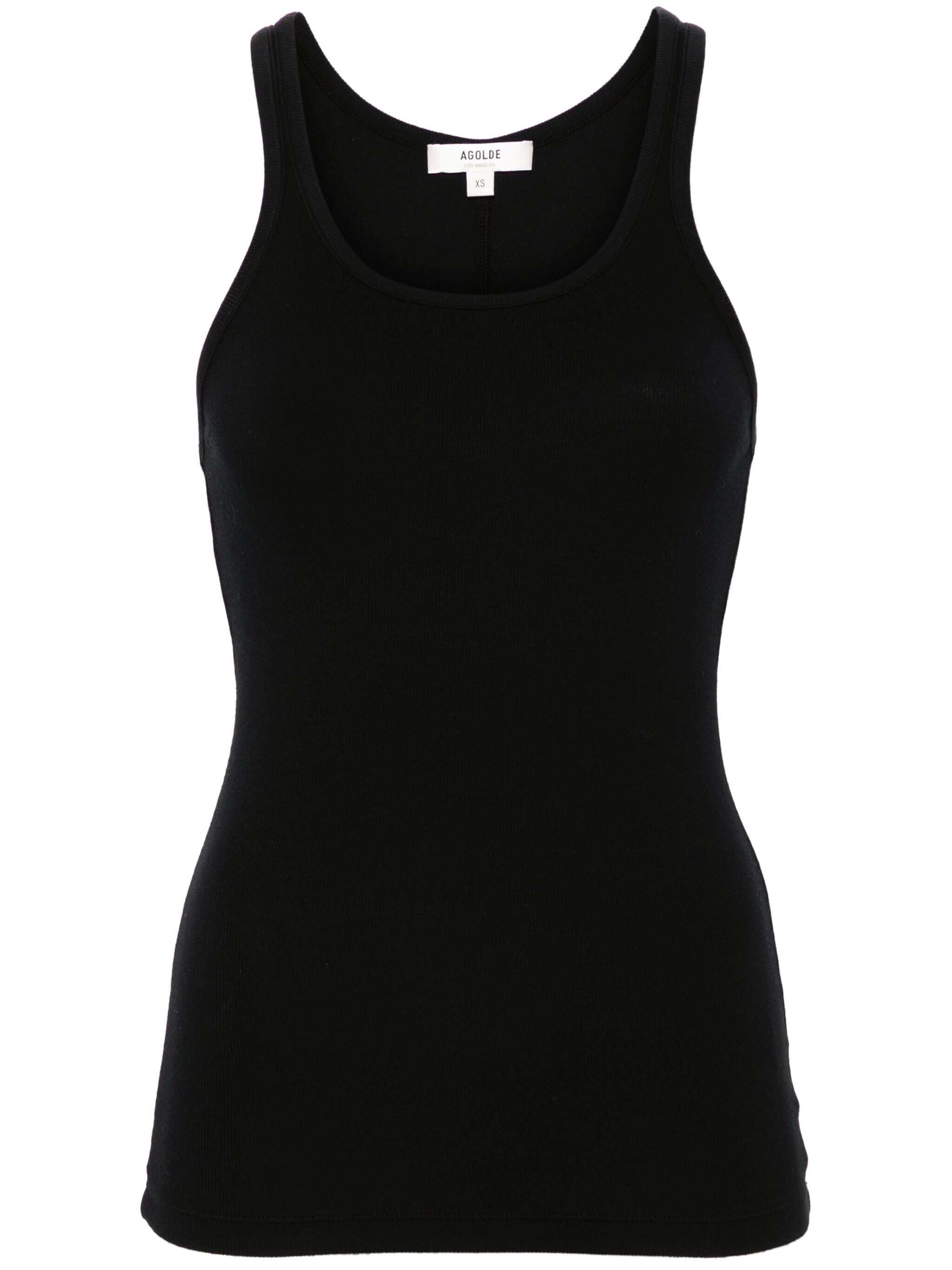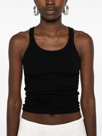 black cotton blend ribbed knit scoop neck sleeveless straight hem Size & Fit Model Measurements: Height: 1.81 m Bust/Chest: 83.0 cm Hips: 90.0 cm Waist: 60.0 cm Model wears size XS Fabric and Care Designer Style ID: A7278B1095 Designer Colour: BLACK Composition: Micromodal 48%, Spandex/elastane 6%, Supima cotton 46% Washing instructions: Machine Wash Made in United States
