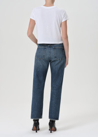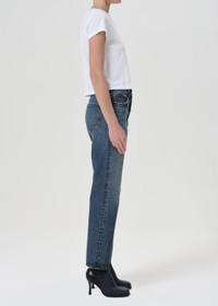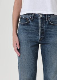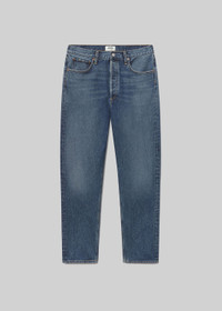 Cue the nostalgia. This 90’s inspired mid-rise is designed to sit relaxed on the waist with an eased up fit through the hips, finished with a loose, straight leg. Style back to just about anything, from a classic tee to a chunky knit. Crafted in our signature Organic Cotton, this pair will only get softer with each wash. For the shorter inseam, shop the 90's Crop. This fit is intended to be relaxed. Size down for a higher, closer fit. Looks Like: Lived-in deep medium indigo with fading, whiskering, and a clean hem Feels Like: Zero-stretch organic cotton with enough drape for all day ease MORE DETAILS Closure: Button Fly Rise: 12 3/4" Inseam: 29" Leg Opening: 16" Model is 5'10" and is wearing a Size 27 Fabric: 100% Organic Cotton Care Instructions: Machine wash cold inside out with like colors. Do not bleach. Tumble dry low. Made in Turkey with imported materials A069G-1206_IMAGI