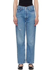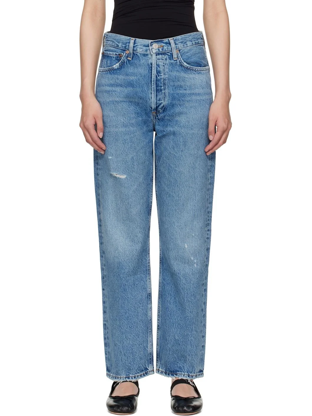 Non-stretch regenerative cotton denim jeans. Fading, whiskering, and distressing throughout. · Loose-fit, straight-leg · Mid-rise · Belt loops · Five-pocket styling · Button fly · Logo-engraved silver-tone hardware · Contrast stitching in tan Supplier color: Shrine 100% regenerative cotton. Made in Turkey 252214F069052