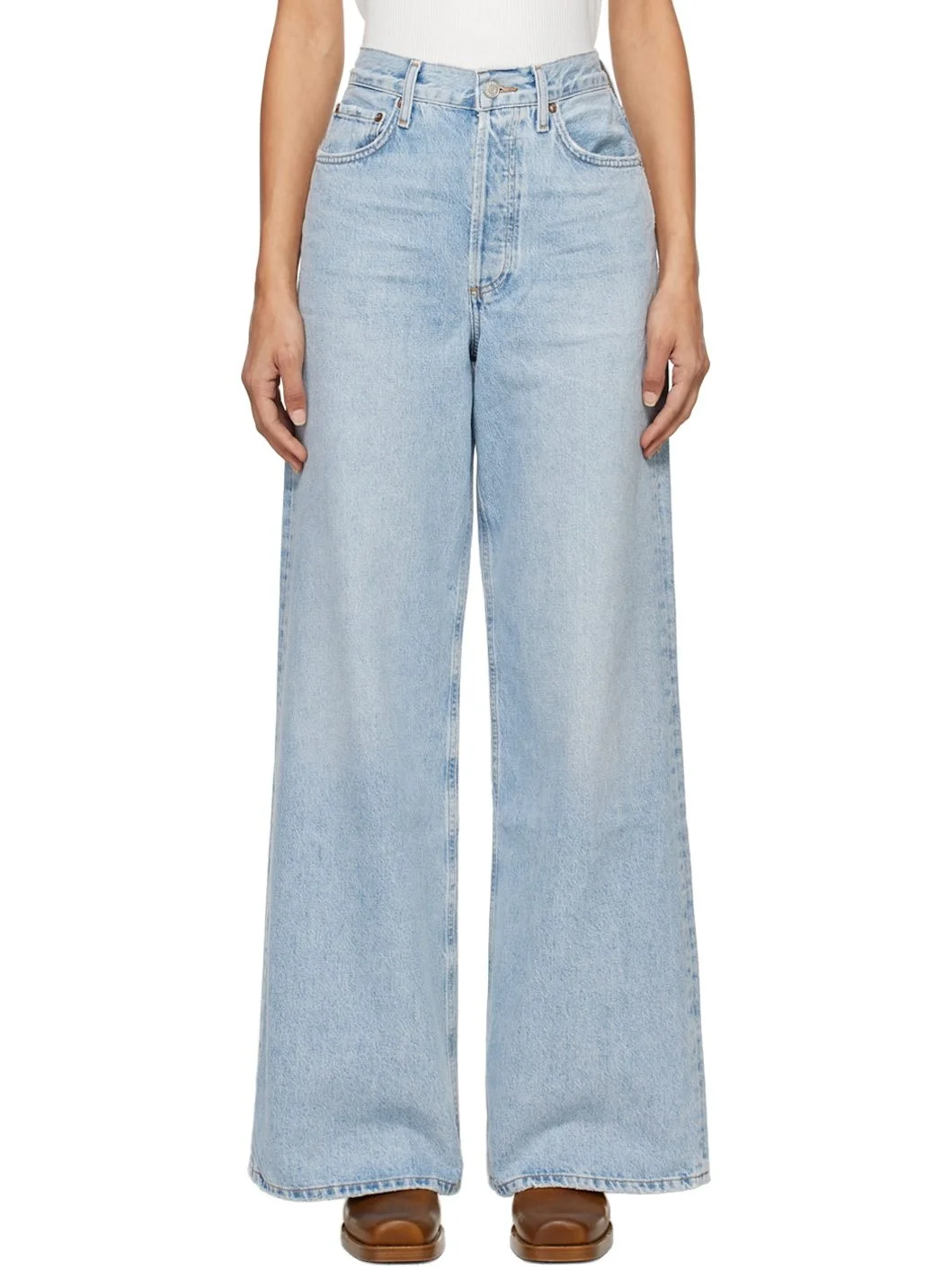 Relaxed-fit and wide-leg non-stretch regenerative cotton denim jeans. Fading, whiskering, and subtle distressing throughout. · High-rise · Belt loops · Five-pocket styling · Button-fly · Logo-engraved silver- and copper-tone hardware · Contrasting stitching in tan Supplier color: Conflict 100% regenerative cotton. Made in Turkey 251214F069017