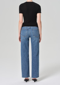 The Harper is crafted from recycled cotton with just the right amount of stretch for comfort. Featuring a relaxed mid-rise fit, it has a flattering square top block and a straight leg. Made in vintage indigo denim with fading and whiskering throughout, it offers a perfectly worn-in, vintage look. A versatile piece that pairs effortlessly with everything from casual tees to elevated tops. This fit is true to size. Looks Like: Medium to dark vintage indigo denim with fading and whiskering throughout Feels Like: Signature comfort stretch denim made with uncompromising recovery MORE DETAILS Closure: Zip Fly Rise: 11 1/4" Inseam: 32" Leg Opening: 19 1/2" Model is 5'10" and is wearing a Size 27 Fabric: 88% Cotton 11% Post Consumer Recycled Cotton 1% Elastane Care Instructions: Machine wash cold inside out with like colors. Do not bleach. Tumble dry low. Made in Turkey with imported materials A9153C-1554-FIX