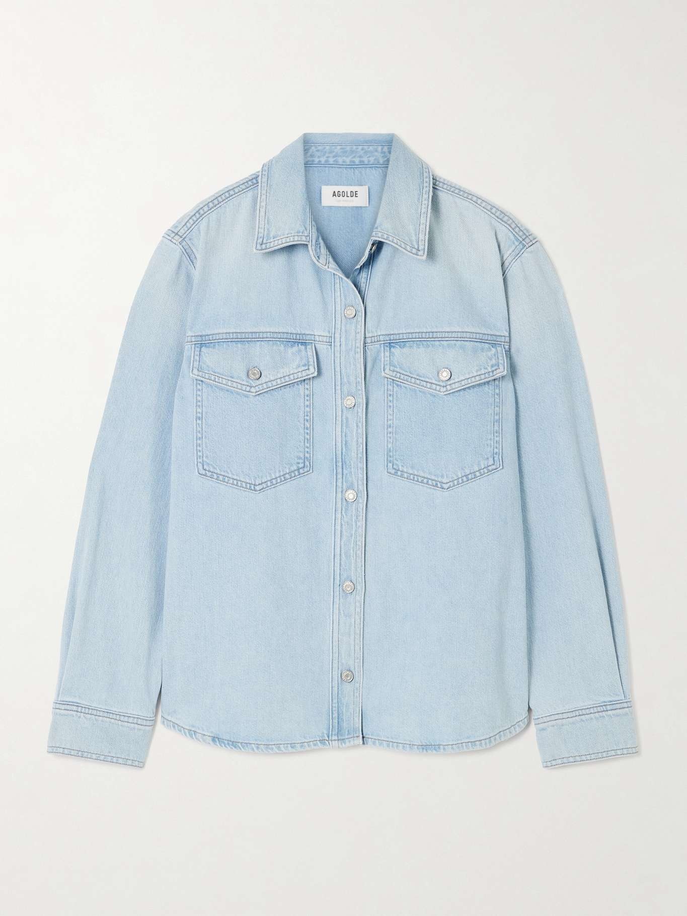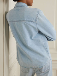 EDITORS'NOTES Developed in the USA, the denim used for AGOLDE's 'Rina' shirt is a blend of regenerative and post-consumer recycled cotton. It's tailored in a relaxed, classic design that gives vintage Americana. Lower-Impact Materials. This product is made using at least 50% lower-impact materials or ingredients. Find out more about our NET SUSTAIN criteria here. SIZE & FIT Model measurements: - Fits true to size, take your normal size - Designed for a relaxed fit - Mid-weight, non-stretchy fabric - Model is 180cm/ 5'11" and is wearing a size Small - Bust: 76cm/ 30" - Waist: 64cm/ 25" - Hip: 86cm/ 34" DETAILS & CARE - Light-blue denim - Button fastenings through front - 80% regenerative cotton, 20% post-consumer recycled cotton - Designer wash: Extract - This product has been made with regenerative cotton, supporting holistic farming practices that increase soil health, improve biodiversity and reduce carbon emissions