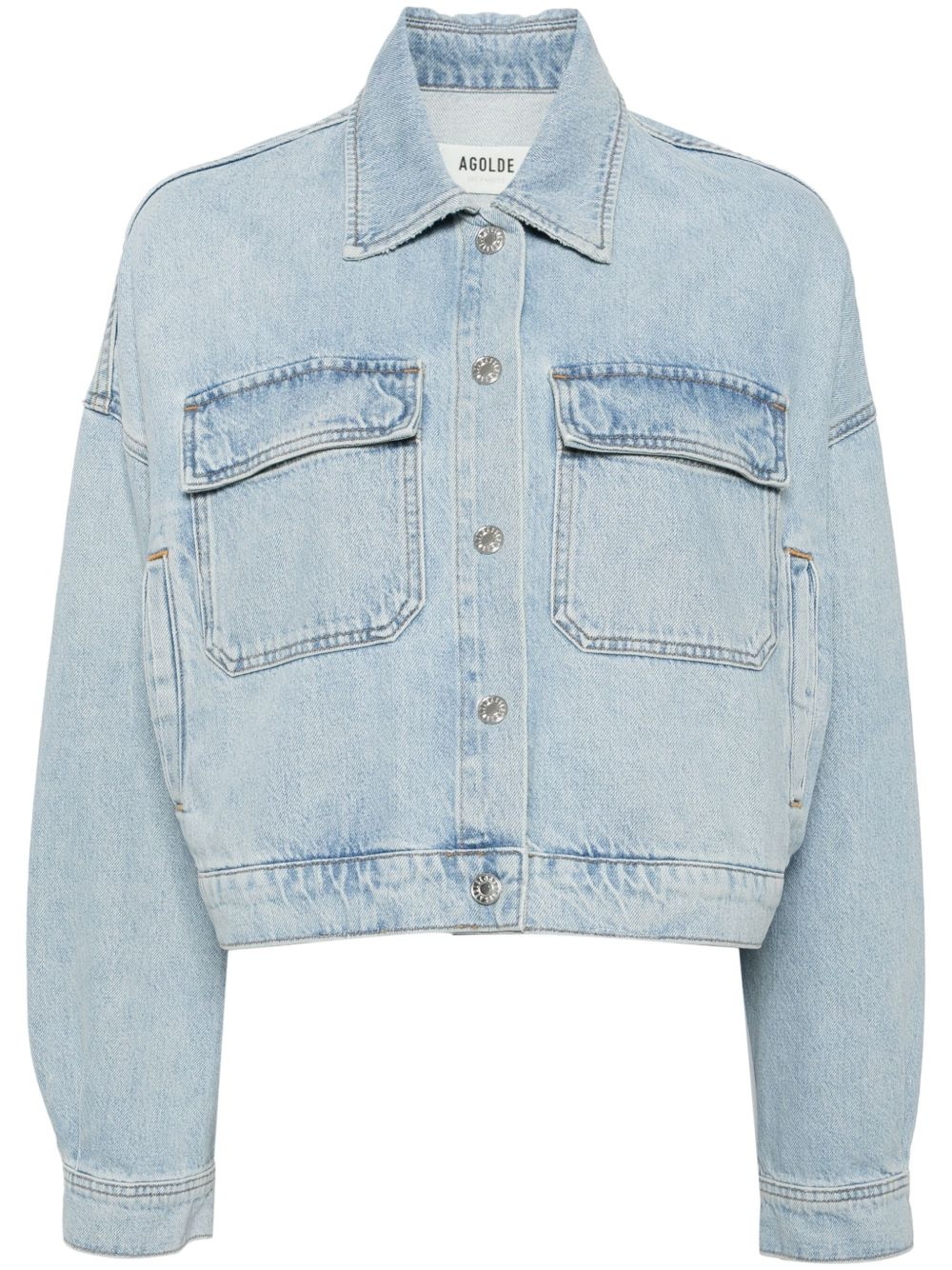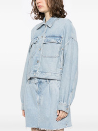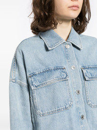 regenerative cotton denim jacket Highlights - Light blue - Regenerative cotton - Denim - Drop shoulder - Two front patch pockets - Two side welt pockets - Front button fastening - Classic collar - Long sleeves - Straight hem Imported Composition Regenerative Cotton 100% SIZE & FIT Model measurements Height 5 ft 10 in(1.78 m) Bust/Chest 32.67 in(83 cm) Hips 37 in(94 cm) Waist 25.59 in(65 cm) Measurement SLEEVE LENGTH 19.68 in(50 cm) LENGTH 18.89 in(48 cm) WAIST 43.3 in(110 cm) BUST 46.45 in(118 cm) Shoulder Width 23.62 in(60 cm)