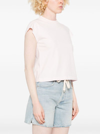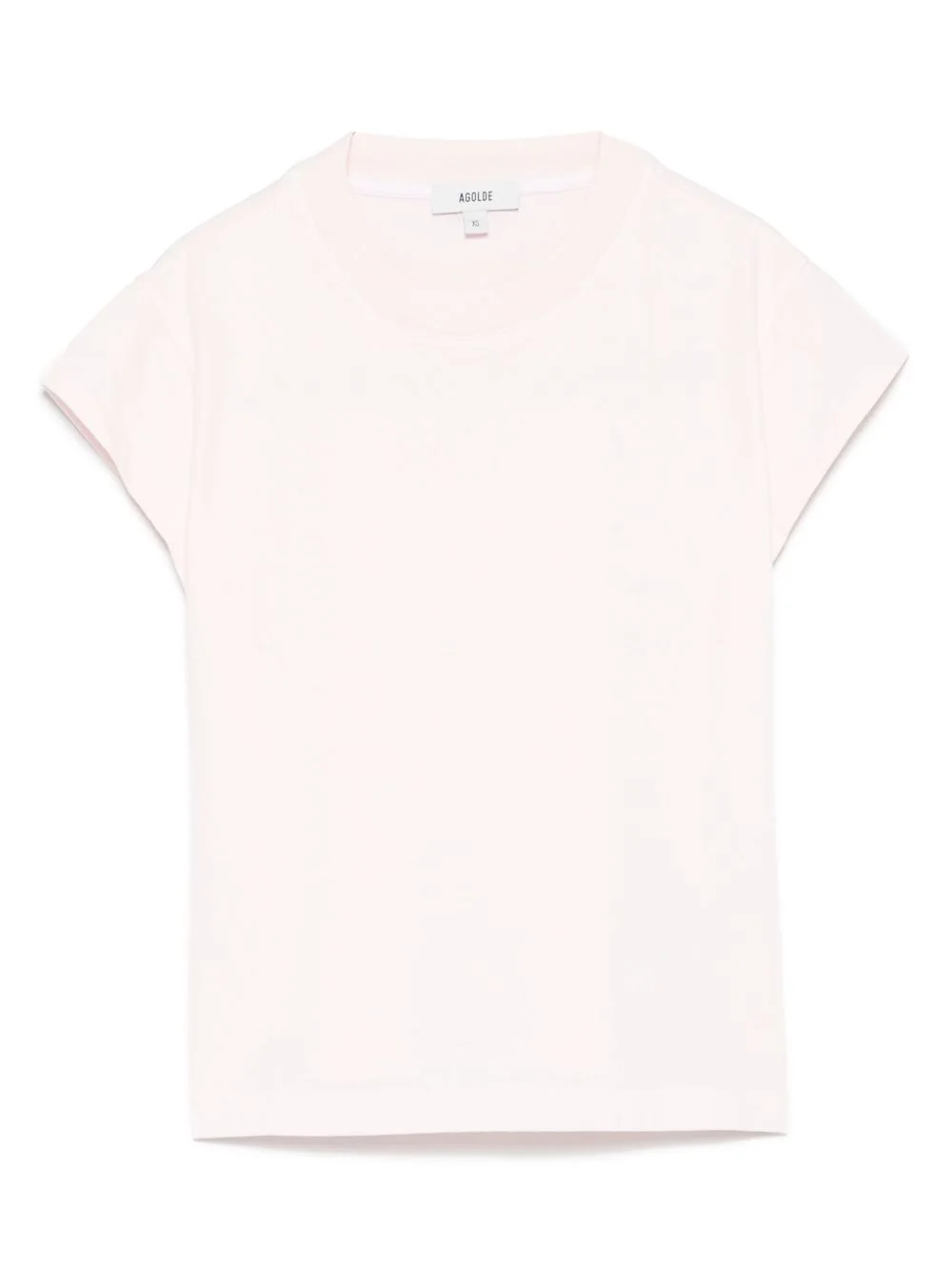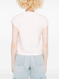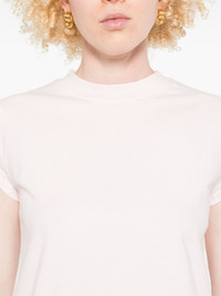 cotton T-shirt Highlights - Light pink - Round neck - Short sleeves - Tonal stitching Made in United States Composition Cotton 100% SIZE & FIT Model measurements Height 5 ft 9 in(1.75 m) Bust/Chest 34.64 in(88 cm) Hips 36.61 in(93 cm) Waist 26.37 in(67 cm) FittingInformation Designed for a slim fit that sits just away from the body offering a close yet comfortable fit Made from a midweight non-stretch fabric, this piece offers minimal elasticity when worn