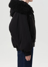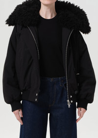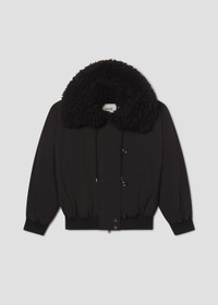 A short parka with a structured, tailored finish. The fit is true to size and features a faux fur-trimmed hood with a double front closure for added warmth and style. In true black, it combines functional design with modern tailoring, perfect layered over knitwear or a sleek base layer for an elevated winter look. This fit is true to size. Looks Like: True black short parka jacket with faux fur hood and double front closure Feels Like: Non stretch, cool to the touch polyester MORE DETAILS Model is 5'10" and wearing a size Small Fabric: 100% Polyester Care Instructions: Machine wash cold inside out with like colors. Do not bleach. Tumble dry low. Made in Vietnam with imported materials A5096-BLK