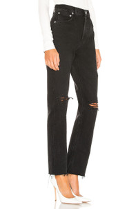 - 100% cotton - Light fading and destroyed detail - Zip fly with button closure.5-pocket design - Frayed hem - Rigid denim fabric - Made in USA.15" at the knee narrows to 14" at the leg opening - Revolve Style No. AGOL-WJ255 - Manufacturer Style No. A084-998