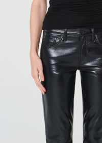 The Cocktail Ankle Jean is a slim, ankle-length pant in luxe black recycled leather with a matte finish. Buttery with slight stretch for ease, it offers a sleek, modern silhouette that’s true to size. Perfect paired with fitted tops or layered under oversized knits for a polished, contemporary look. This fit is true to size. Looks Like: Luxe black recycled leather with matte finish Feels Like: Buttery, recycled leather with slight stretch for ease MORE DETAILS Closure: Button Fly Rise: 9 3/4" Inseam: 28 1/2" Leg Opening: 13" Model is 5'10" and is wearing a Size 27 Fabric: 950% Recycled Leather, 30% Polyurethane, 10% Viscose, 10% Polyester Care Instructions: Machine wash cold inside out with like colors. Do not bleach. Tumble dry low. Made in Turkey with imported materials A301-1285-DETOX