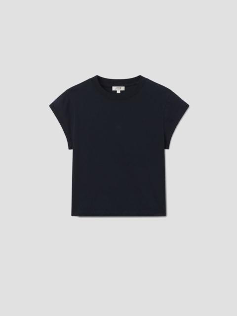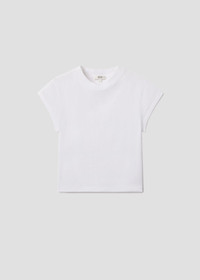 When you need more than just a basic tee—meet the Bryce. Crafted from 100% breathable, ultra-soft cotton, it’s perfect for wearing solo or layering. The angled sleeves add a modern touch, creating a fresh and flattering silhouette that effortlessly elevates any look. This fit is true to size. Looks Like: Clean white crewneck tee with cap sleeves Feels Like: Lightweight jersey with an easy drape for all day wearability MORE DETAILS Body Length: 21 1/4" Shoulder to Shoulder: 15 1/2" Sleeve Length: 3 1/2" Chest: 38" Sweep: 39" Model is 5'10" and wearing a size Small Fabric: 100% Cotton Care Instructions: Machine wash cold. Made in Turkey with imported materials A7207-1521_WHT