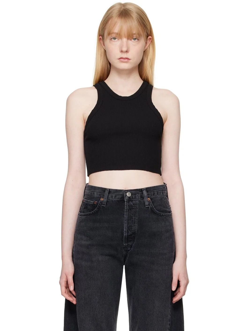 Stretch organic cotton-blend ribbed jersey tank top. · Rib knit scoop neck and armscyes · Raw edge at cropped hem Supplier color: Black 49% organic cotton, 49% lyocell, 2% elastane. Made in United States 242214F111004