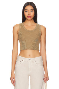 - 49% organic cotton 49% lyocell 2% elastane - Made in USA - Machine wash - Ribbed jersey fabric with lasercut hem - Revolve Style No. AGOL-WS240 - Manufacturer Style No. A7225B-1260