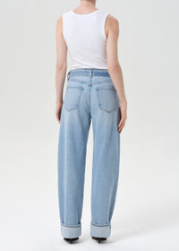 The Cuffed Taper is a relaxed, mid-rise silhouette with a voluminous leg that narrows at the ankle. Crafted from rigid, non-stretch regenerative cotton denim with a soft hand, this pale vintage indigo wash features subtle fading, marbling, and whiskering. Finished with an optional cuff, it’s designed for easy styling and a laid-back yet refined look. Looks Like: Pale vintage indigo denim pant with optional cuff Feels Like: Rigid, non stretch cotton denim with a soft hand for all day wearability MORE DETAILS Closure: Zipper Fly Rise: 11 3/4" Inseam: 31" Leg Opening: 19" Model is 5'10" and is wearing a Size 27 Fabric: 100% Regenerative Cotton Care Instructions: Machine wash cold inside out with like colors. Do not bleach. Tumble dry low. Made in Turkey with imported materials A270-1810-DWPT
