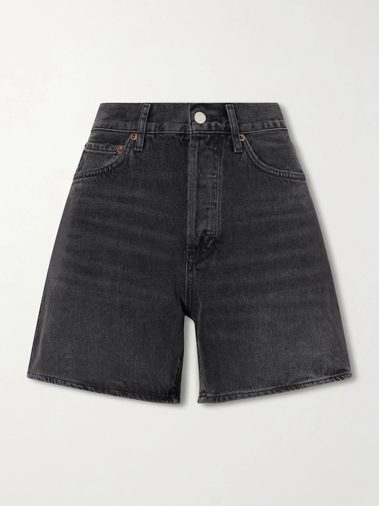 AGOLDE's 'Dame' shorts have a high waist and relaxed leg shape with a generous 6-inch inseam. They're made from cotton-denim in a black wash the brand calls 'Hitch'. Lower-Impact Materials. This product is made using at least 50% lower-impact materials or ingredients. Find out more about our NET SUSTAIN criteria here.