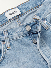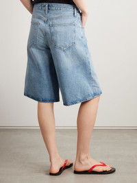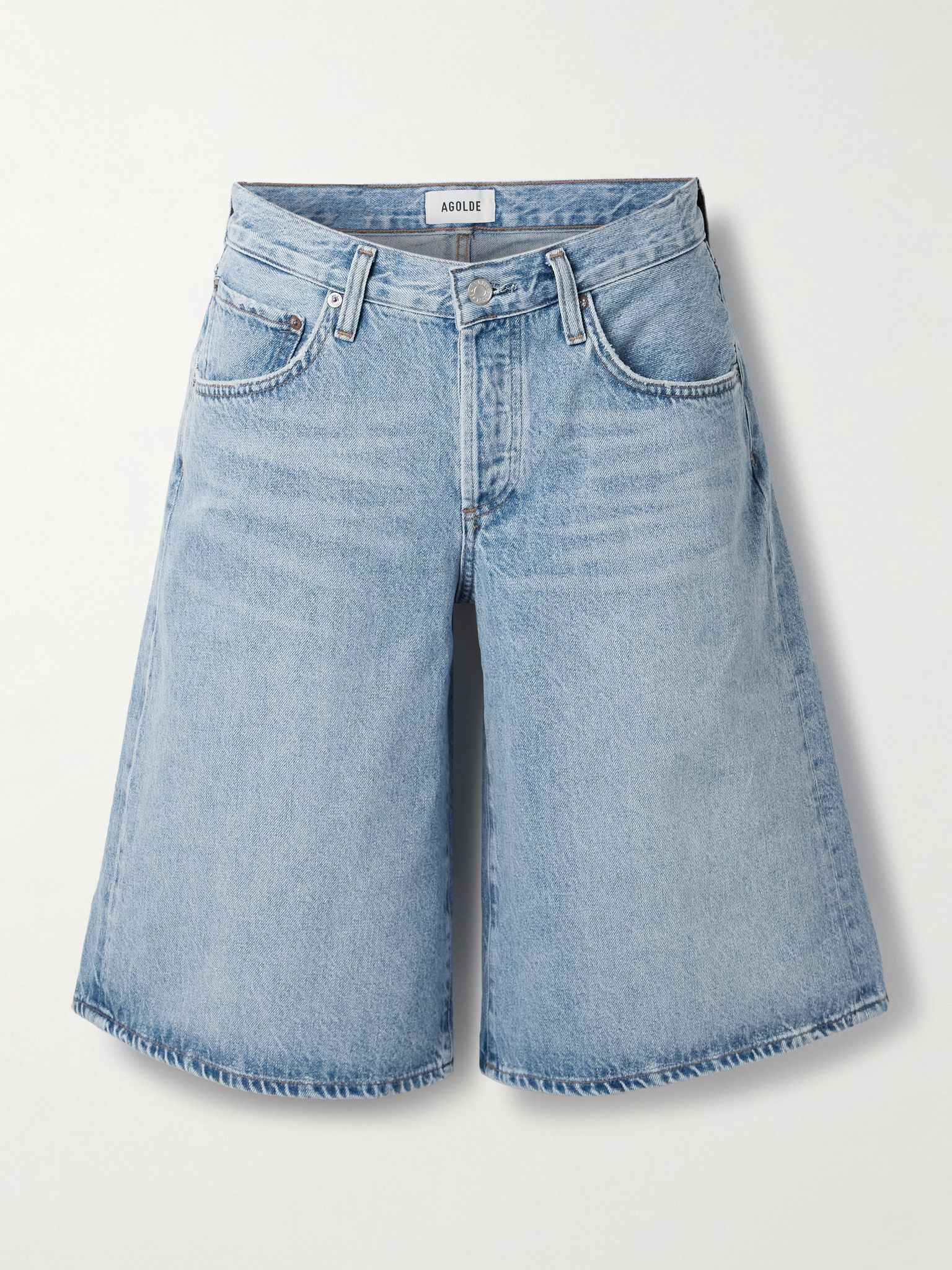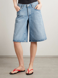 If you're a fan of AGOLDE's 'V-Waist' jeans, you'll want to add these shorts to your summer rotation. Cut from light-blue denim, they're subtly whiskered and have a relaxed, longline shape. Lower-Impact Materials. This product is made using at least 50% lower-impact materials or ingredients. Find out more about our NET SUSTAIN criteria here. Size & Fit - Fits true to size, however those who are between sizes should take the smaller size - High-rise, designed for a loose fit - Mid-weight, non-stretchy denim - Model is 177cm/ 5'10" and is wearing a size 26 Model measurements: - Bust: 77cm/ 30.5" - Waist: 61cm/ 24" - Hip: 92cm/ 36" Details & Care - Light-blue denim - Partially concealed button fastenings along front - 100% regenerative cotton - Machine wash - Designer wash: Prevail - This product has been made with regenerative cotton, supporting holistic farming practices that increase soil health, improve biodiversity and reduce carbon emissions