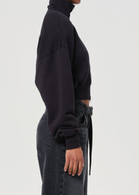 The Darby Zip Up is a high-collared sweatshirt with a cropped, boxy fit and exaggerated ribbed hem. Crafted from breathable, soft cotton fleece with a natural drape, this washed black version offers an effortless, lived-in feel. Style with tonal denim or layer over a slim tank for a relaxed yet refined look. This fit is true to size. Looks Like: Washed black high collared zip front sweatshirt Feels Like: Breathable soft cotton fleece with just the right amount of drape MORE DETAILS Body Length: 19" Shoulder to Shoulder: 25 1/4" Sleeve Length: 21 1/2" Model is 5'10" and wearing a size Small Fabric: 100% Cotton Care Instructions: Machine wash cold. Made in Portugal with imported materials A7396-WSDB