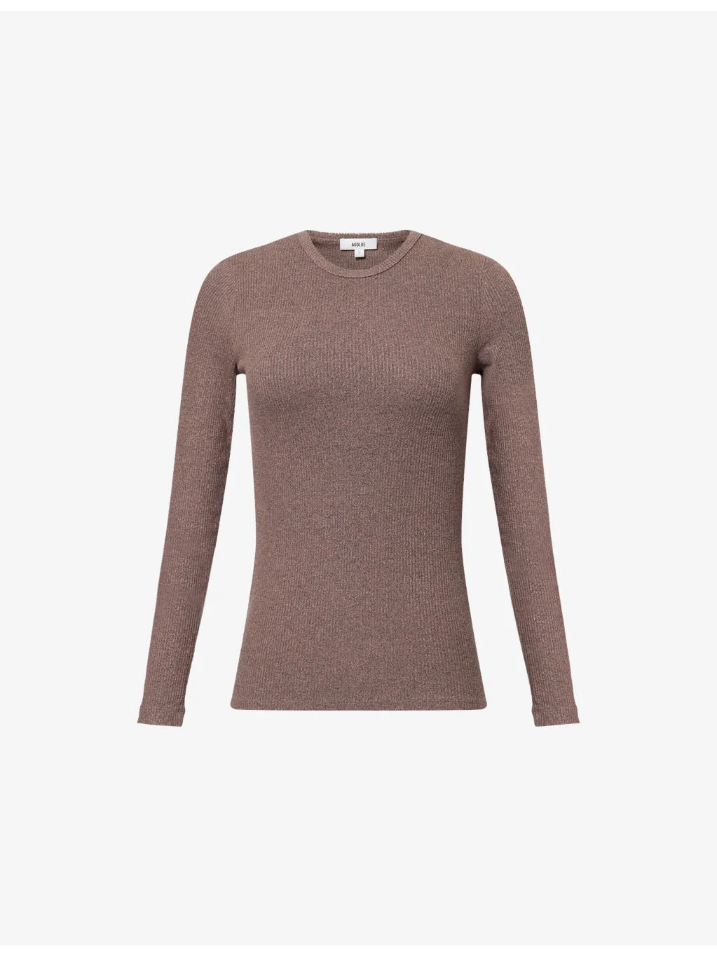 PRODUCT DETAILS - AGOLDE rib-knit top - 50% polyester, 32% cotton, 18% rayon - Pulls on - Slim fit, round neck, long sleeves, rib-knit - Machine wash mild - True to size - Model is 5ft 10in/1.78m and wears a size small - Lightweight, stretchy Ref: R04540444