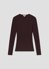 The Delphi Slim Tee is a fitted long sleeve crewneck with a flattering ribbed texture. Crafted from midweight fabric, it offers a sleek, streamlined fit ideal for layering or wearing solo. This fit is true to size. Looks Like: Dark brown and burgundy fitted long sleeve crewneck tee Feels Like: Midweight intermingle chunky rib that hugs the body MORE DETAILS Body Length: 25" Chest: 27" Shoulder to Shoulder: 13" Sleeve Length: 25" Model is 5'10" and wearing a size Small Fabric: 50% Polyester, 32% Cotton, 18% Rayon Care Instructions: Machine wash cold. Made in USA with imported materials A7230-1352_RIS
