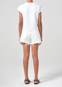 The Parker Short in clean white denim offers a high-rise fit with a relaxed silhouette through the hips. Made from regenerative cotton, these non-stretch shorts deliver a crisp, fresh look that's both stylish and versatile. Perfect for pairing with casual tees or lightweight blouses for an effortless, laid-back vibe. For a longer inseam, shop the Parker Long. This fit is true to size. Looks Like: Clean vintage white denim short Feels Like: Rigid, non stretch denim made with an authentic, soft hand feel MORE DETAILS Closure: Button Fly Rise: 11 1/4" Inseam: 2 1/2" Leg Opening: 24 1/2" Model is 5'10" and is wearing a Size 27 Fabric: 100% Regenerative Cotton Care Instructions: Machine wash cold inside out with like colors. Do not bleach. Tumble dry low. Made in Turkey with imported materials A026E-1183-RPS