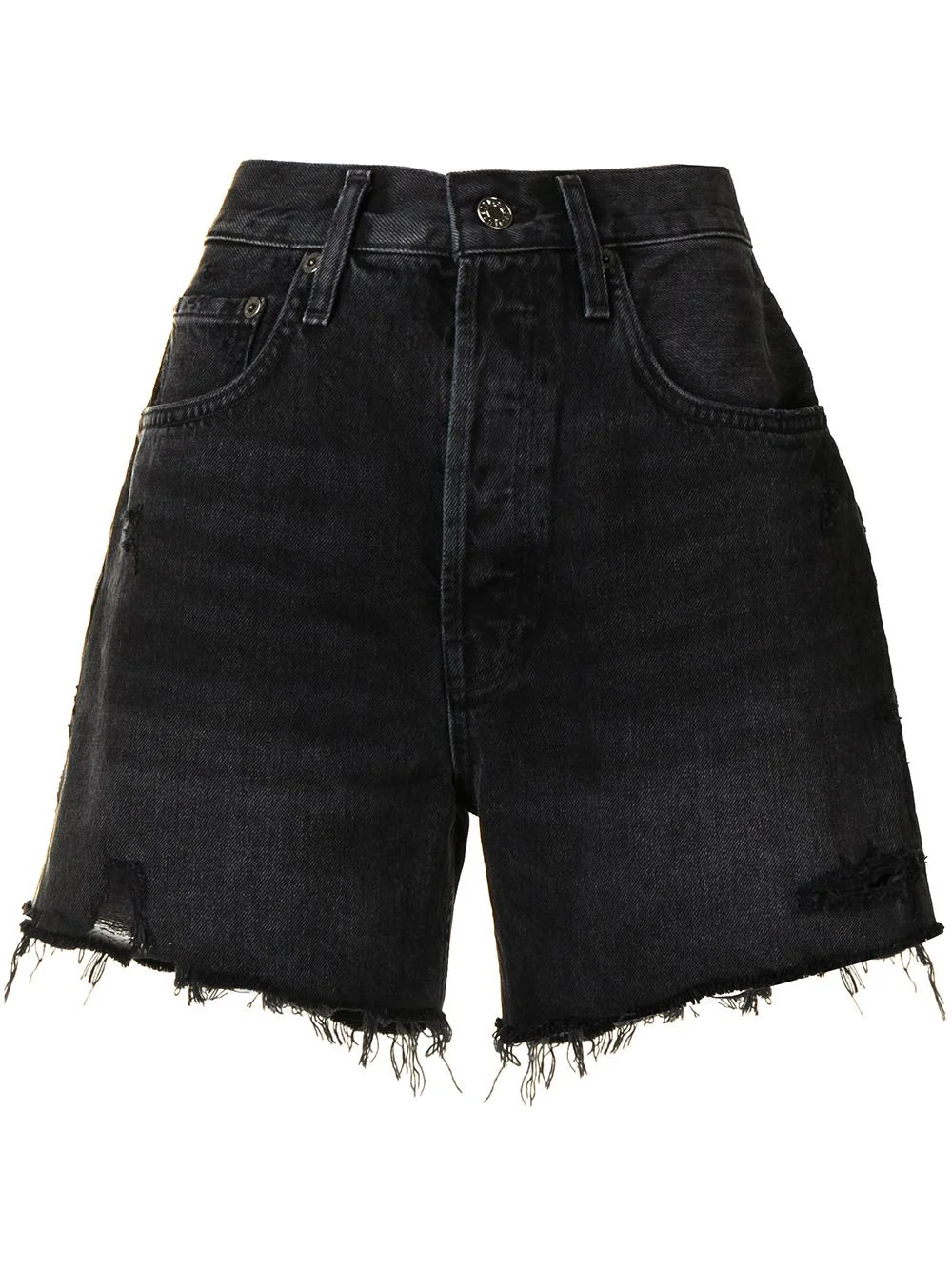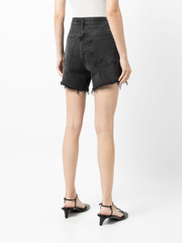 distressed-effect whiskering denim shorts vortex grey cotton high waist belt loops front button and zip fastening classic five pockets whiskering effect at the thighs distressed effect raw-cut edge Made in United States Composition Cotton 100% SIZE & FIT Model measurements Height 5 ft 10 in(1.79 m) Bust/Chest 31.1 in(79 cm) Hips 36.61 in(93 cm) Waist 25.98 in(66 cm) Measurement INSIDE LEG 4.33 in(11 cm) HIPS 38.97 in(99 cm) WAIST 28.34 in(72 cm) Washing instructions Dry Clean Only