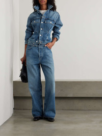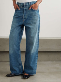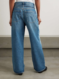 EDITORS'NOTES AGOLDE's 'Emmi' jeans have a high waist that hugs your hips, accentuating the slouchy, wide-leg shape. They're made with soft cotton and Lyocell-blend denim and threaded with a slim belt. Lower-Impact Materials. This product is made using at least 50% lower-impact materials or ingredients. Find out more about our NET SUSTAIN criteria here. SIZE & FIT Model measurements: - Fits true to size, take your normal size - High-rise, cut for a wide-leg fit - Mid-weight, non-stretchy denim - Size 25 jeans have an inside leg of 30"/ 75cm - Model is 177cm/ 5'10" and is wearing a size 25 - Bust: 77cm/ 30.5" - Waist: 62cm/ 24.5" - Hip: 88cm/ 34.5" DETAILS & CARE - Blue denim - Partially concealed button fastenings along front - 67% cotton, 22% Lyocell, 11% post-consumer recycled cotton - Machine wash - Designer wash: Intuition - This product has been made with regenerative cotton, supporting holistic farming practices that increase soil health, improve biodiversity and reduce carbon emissions