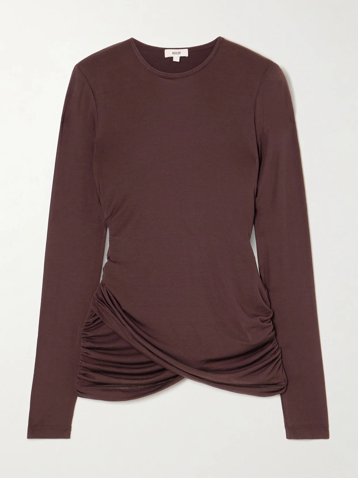 AGOLDE's 'Eve Twist' top is cut from figure-skimming stretch-Lyocell jersey and has gathering at the hem for subtle drape. It has a classic crew neck and semi-sheer long sleeves - the perfect accompaniment to your best pair of jeans. Lower-Impact Materials. This product is made using at least 50% lower-impact materials or ingredients. Find out more about our NET SUSTAIN criteria here.