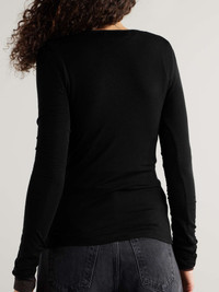 EDITORS'NOTES AGOLDE'S 'Faustine' Henley top is made from Lyocell-blend that's incredibly lightweight and soft, making it the perfect layering piece. It's cut for a close fit and looks especially cool with a few of the buttons undone. Lower-Impact Materials. This product is made using at least 50% lower-impact materials or ingredients. Find out more about our NET SUSTAIN criteria here. SIZE & FIT Model measurements: - Fits true to size, take your normal size - Designed for a close fit - Lightweight, stretchy fabric - Model is 180cm/ 5'11" and is wearing a size Small - Bust: 79cm/ 31" - Waist: 65cm/ 25.5" - Hip: 90cm/ 35.5" DETAILS & CARE - Black Lyocell-blend - Button fastenings along front - 94% Lyocell, 6% spandex - Hand wash