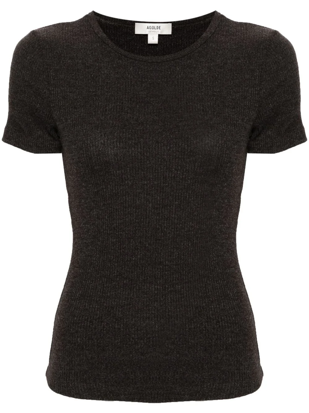 Harri ribbed T-shirt Highlights - Grey - Fine ribbed - Melange effect - Crew neck - Short sleeves - Straight hem Made In United States Composition Polyester 50%, Cotton 32%, Rayon 18% SIZE & FIT Model measurements Height 5 ft 10 in(1.78 m) Bust/Chest 33.46 in(85 cm) Hips 36.22 in(92 cm) Waist 23.22 in(59 cm) FittingInformation Designed for a close fit throughout Made from a midweight non-stretch fabric, this piece offers minimal elasticity when worn This piece fits true to size – take your usual size