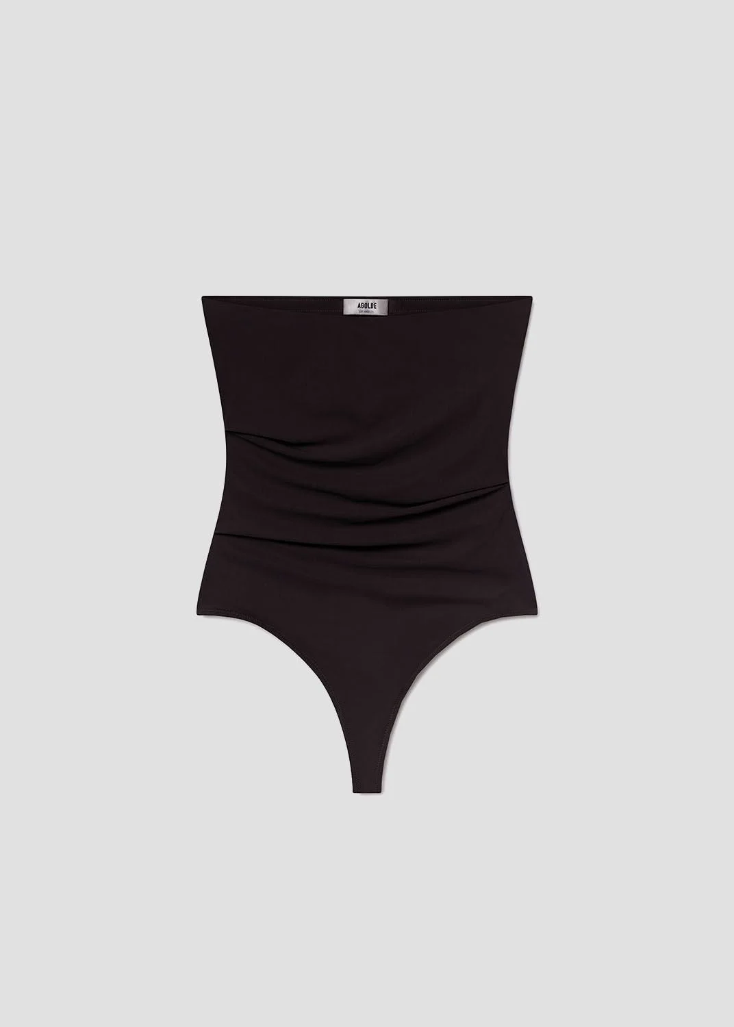 The Gwyneth Bodysuit is a sleek, strapless design crafted from AGOLDE's signature second-skin fabric. Featuring flattering ruching details, this form-fitting bodysuit offers a smooth, streamlined silhouette. Perfect for layering or wearing on its own, it’s a versatile and chic addition to any wardrobe. This fit is true to size. Looks Like: Clean black strapless bodysuit Feels Like: Lightweight second skin ultra-smooth elastane blend MORE DETAILS Model is 5'10" and is wearing a Size 27 Fabric: 80% Polyamide, 20% Elastane Care Instructions: Machine wash cold inside out with like colors. Do not bleach. Tumble dry low. Made in USA with imported materials A7342-1460-BLK