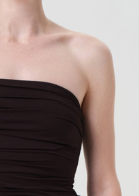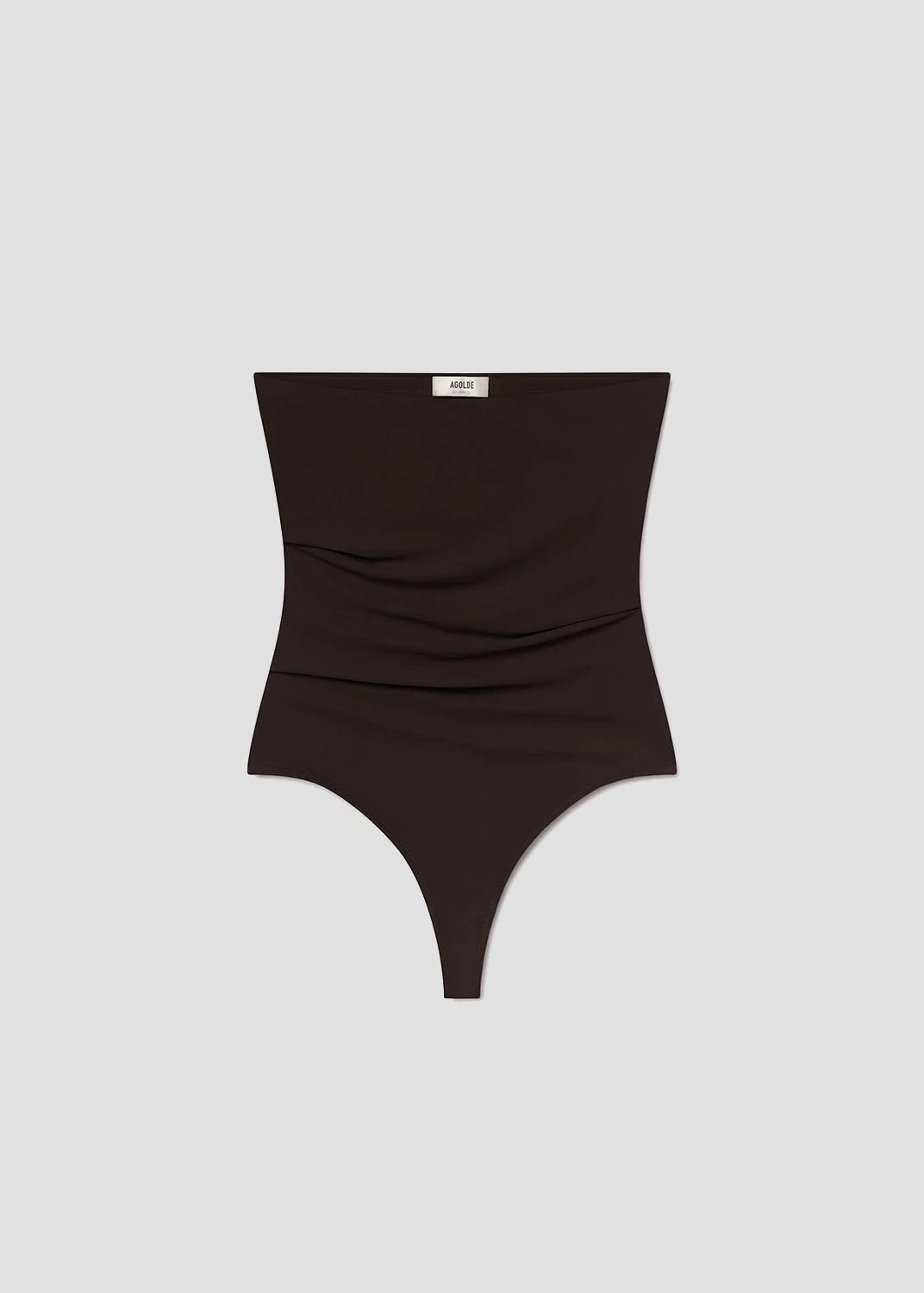 The Gwyneth Bodysuit is a sleek, strapless silhouette crafted from a lightweight, ultra-smooth elastane. It’s the perfect minimalist base layer. Style with high-rise denim or tailored trousers for an easy, modern look. This fit is true to size. Looks Like: Deep dark brown strapless bodysuit Feels Like: Lightweight second skin ultra-smooth elastane blend MORE DETAILS Model is 5'10" and is wearing a Size 27 Fabric: 80% Polyamide, 20% Elastane Care Instructions: Machine wash cold inside out with like colors. Do not bleach. Tumble dry low. Made in USA with imported materials A7342-1460-CHO