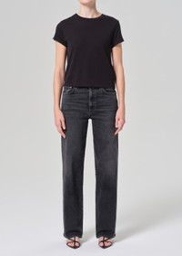 The Harper is crafted from regenerative cotton with added stretch for extra comfort. Featuring a relaxed mid-rise fit, it has a flattering square top block and a straight leg. Made in a black wash denim, it offers a sleek, versatile look with a smooth, clean finish. Perfect for pairing with everything from casual tees to elevated tops, this piece is a wardrobe staple for any occasion. Crafted in our signature Organic Cotton, this pair will only grow more comfortable with each wear. This fit is true to size. Looks Like: Deep washed black denim with fading and whiskering Feels Like: Weightless stretch cotton denim that will hold its shape while hugging the body MORE DETAILS Closure: Zip Fly Rise: 11 1/4" Inseam: 32" Leg Opening: 19 1/2" Model is 5'10" and is wearing a Size 27 Fabric: 96% Organic Cotton 3% Polyester 1% Elastane Care Instructions: Machine wash cold inside out with like colors. Do not bleach. Tumble dry low. Made in Turkey with imported materials A9153-1274-HSH