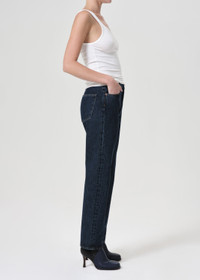 Cue the nostalgia. This 90’s inspired high-rise is designed to sit relaxed on the waist with an eased up fit through the hips, finished with a loose, straight leg. Style back to just about anything, from a classic tee to a chunky knit. This fit is true to size. Looks Like: Clean deep indigo Feels Like: Heavyweight non-stretch cotton with a soft hand feel MORE DETAILS Closure: Button Fly Rise: 12 3/4" Inseam: 29 1/2" Leg Opening: 15 1/2" Model is 5'10" and is wearing a Size 27 Fabric: 100% Regenerative Cotton Care Instructions: Machine wash cold inside out with like colors. Do not bleach. Tumble dry low. Made in Turkey with imported materials A154J-1206_PNDLM