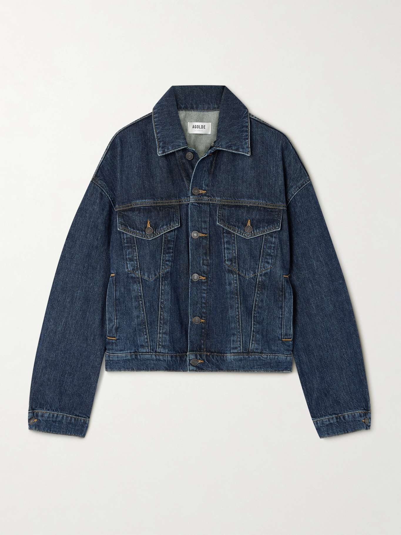 AGOLDE's 'Dalton' jacket is designed with voluminous balloon sleeves, giving the classic style an effortlessly cool look. It's made from dark denim and has a loose fit. Size & Fit - Fits true to size, take your normal size - Designed for a loose fit - Dropped shoulder seam - Mid-weight, non-stretchy fabric - Model is 177cm/ 5'10" and is wearing a size Small Model measurements: - Bust: 81cm/ 32" - Waist: 66cm/ 26" - Hip: 94cm/ 37" Details & Care - Dark-blue denim - Button fastenings through front - 100% cotton - Machine wash - Designer wash: Pendulum